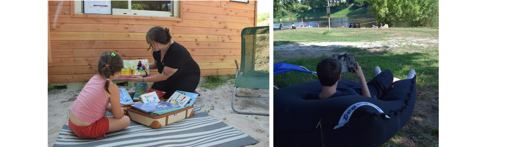 Depuis plusieurs années, l'équipe culturelle du Pays Foyen se mobilise pour vous offrir un espace unique de détente et de découverte. Durant les mois de juillet et août, la plage des Bardoulets, sur les magnifiques rives de la Dordogne, se transforme en une bibliothèque-ludothèque éphémère !