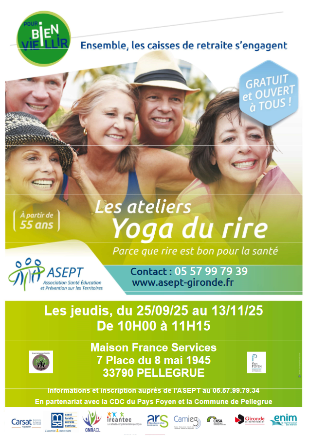 Les ateliers mémoire, issus d’un partenariat réussi entre l'ASEPT, l'AMDPA, France Services et la Médiathèque du Pays Foyen, rencontrent un véritable engouement à P ellegrue ! Pour continuer dans cette dynamique, retrouvez bientôt les ateliers "Yoga du Rire"!