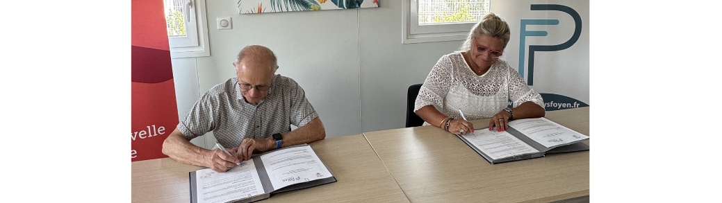 Le 29 juillet à la Maison des entreprises, Pierre Robert, Président de la Communauté de Communes du Pays Foyen a officiellement signé une convention de partenariat avec Nathalie Laporte, Présidente de la Chambre de Métiers et de l'Artisanat de Gironde.